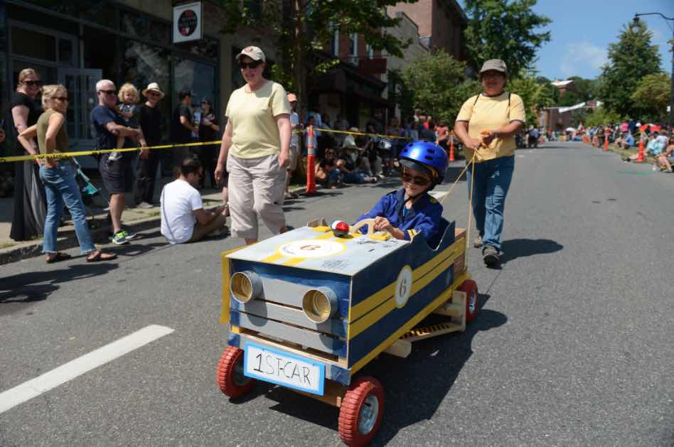 Music and live performances add to a day of fun that concludes with a wacky and entertaining awards ceremony in TR Gallo Park, where participants receive prizes and one-of-kind artist designed trophies and spectators have the opportunity to get last looks at their favorite soapbox cars, lined up post-parade on West Strand.
